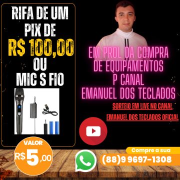RIFA R$ 100 REAIS NO PIX OU MICROFONE SEM FIO P COMPRA EQUIPAMENTOS CANAL EMANUEL DOS TECLADOS OFICIAL