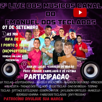 Sorteio 100 no pix 2a live dos musicos 7 de setembro 20h